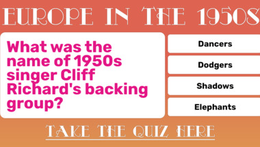 Look forward to questions like "In 1957, the Netherlands lifted a ban on driving on which day of the week?" and "What was the name of 1950s singer Cliff Richard's backing group?"