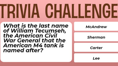 6/10 is what people on average are scoring in this trivia quiz so far. Are you ready to answer questions like "Victory in Europe day (VE Day), is most commonly assoicated with which war?" and "What is the last name of William Tecumseh, the American Civil War General that the Am.."