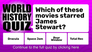 6/10 is what people on average are scoring in this History quiz so far. Are you ready to answer questions like "Which of these movies starred James Stewart?" and "What franchise was bought by a group of partners assembled by President George W. Bus.."