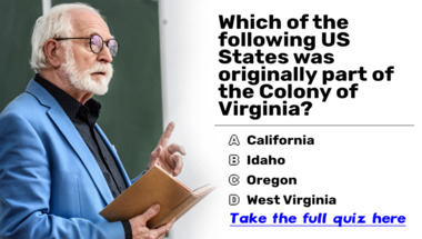 In this fun trivia quiz we're going to ask questions like "Which of the following US States was originally part of the Colony of Virginia?" and "The 1970s were the start of what?".