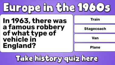 In this fun trivia quiz we're going to ask questions like "In 1965, the Beatles win a Grammy for what category?" and "In 1963, there was a famous robbery of what type of vehicle in England?".