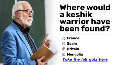 6/10 is the score to beat in this trivia quiz to put yourself over the average quiz taker. But you're probably going to be able to answer questions "Where would a keshik warrior have been found?" and "From which country did Harriet Ann Jacobs, the famous 19th-century abolitionist and a.." easy!