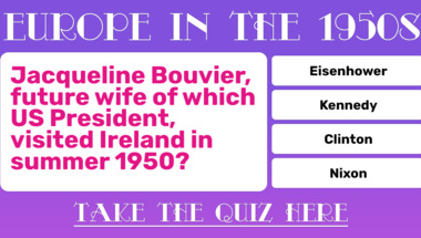 Look forward to questions like "What came before "Pandy" in the title of the popular 1950s children's TV show?" and "Jacqueline Bouvier, future wife of which US President, visited Ireland in summer 1950.."