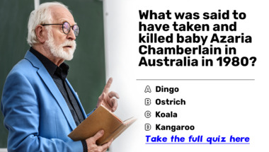 If you can answer "What was said to have taken and killed baby Azaria Chamberlain in Australia in 1980?" and maybe even "In ancient Greek mythology, where did the gods live?" there is a good chance that you're going to beat the average score of 6/10 in this trivia quiz