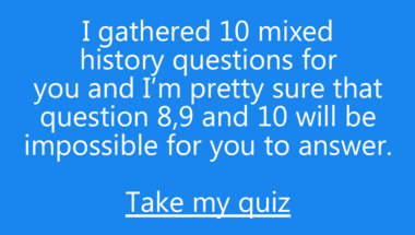 If you can answer "Which country was ordered to pay reparations at the end of WW1?" and maybe even "What was the first name of Italian dictator Mussolini?" there is a good chance that you're going to beat the average score of 7/10 in this History quiz